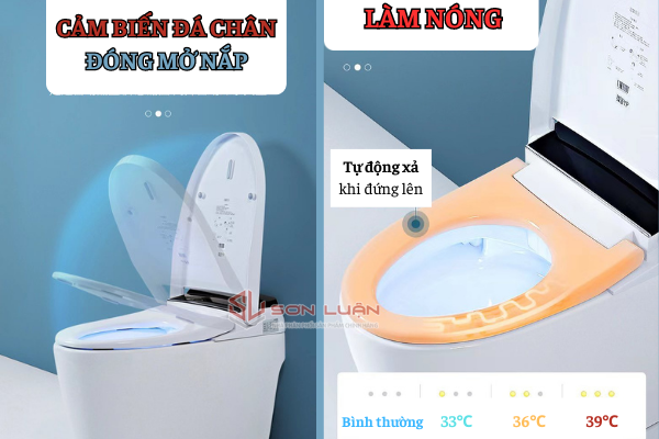 - Thư giãn với chế độ sưởi vành bồn cầu ấm áp. Một trải nghiệm thoải mái chưa từng có trước đây.