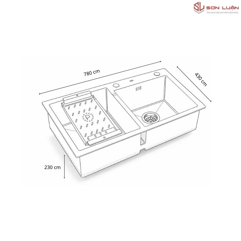 • Kích thước lý tưởng: 785 x 430 x 230 mm (Vừa vặn với đa số bàn đá hiện nay).