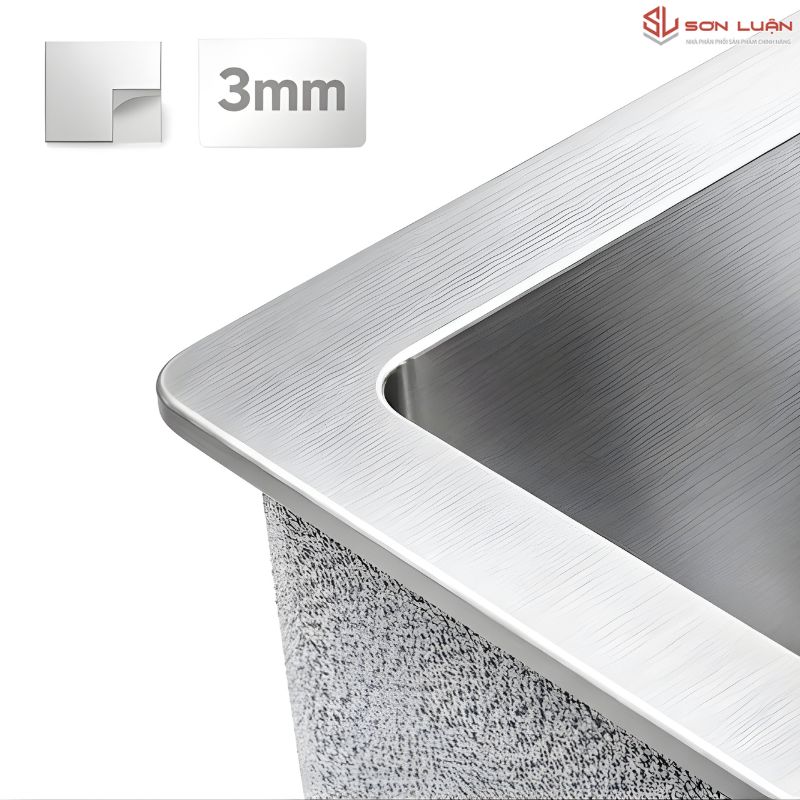 • Độ dày "khủng" 3.0mm: Khác hẳn với các dòng chậu dập mỏng manh (chỉ dày 0.6-0.8mm), thành chậu HM7843-615 dày gấp 4 lần, cực kỳ đầm chắc. Bạn có thể tì tay thoải mái mà không lo chậu bị bập bùng.