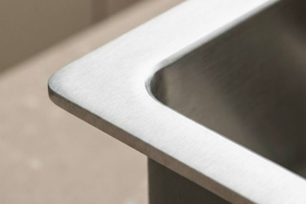 Cận cảnh mép chậu rửa bát Picenza HM8245-615 thể hiện độ dày 3mm chuẩn Inox 304.
