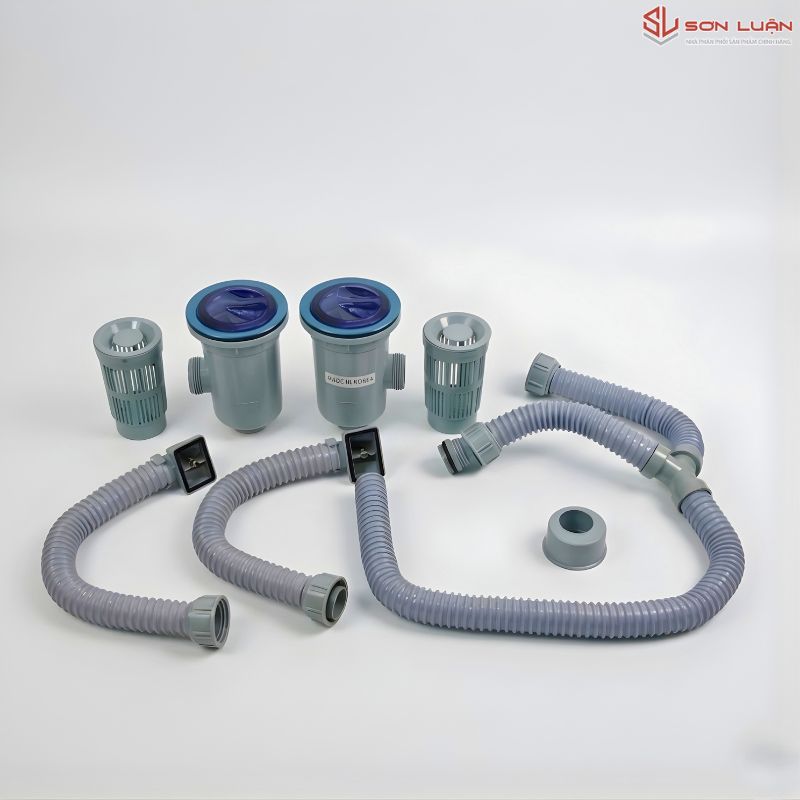 Phụ kiện đi kèm Xi phông ống nhựa chịu nhiệt, bát rác Inox, giá rút đa năng