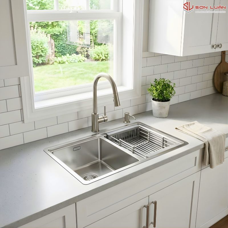 • Siêu dày 3.0mm: Thành chậu dày dặn giúp triệt tiêu hoàn toàn tiếng ồn "bom bốp" khi xả nước hay va chạm bát đĩa.